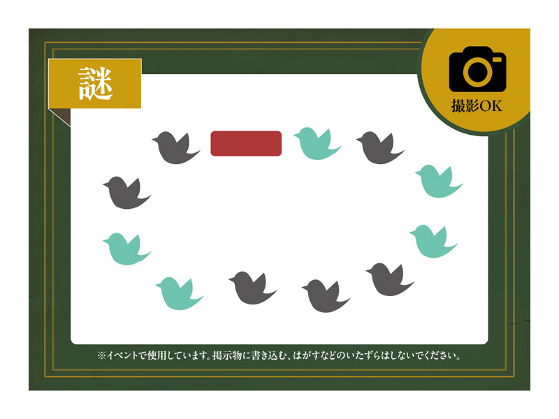 色が青緑色に変化した鳥を時計回りに読むと、答えは「リュウソウ(琉装)」になります。
